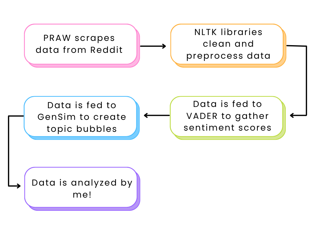 Reddit has lots of historical data accessible since many of these subreddits have been active for years — allows for time analysis as well as sentiment analysis